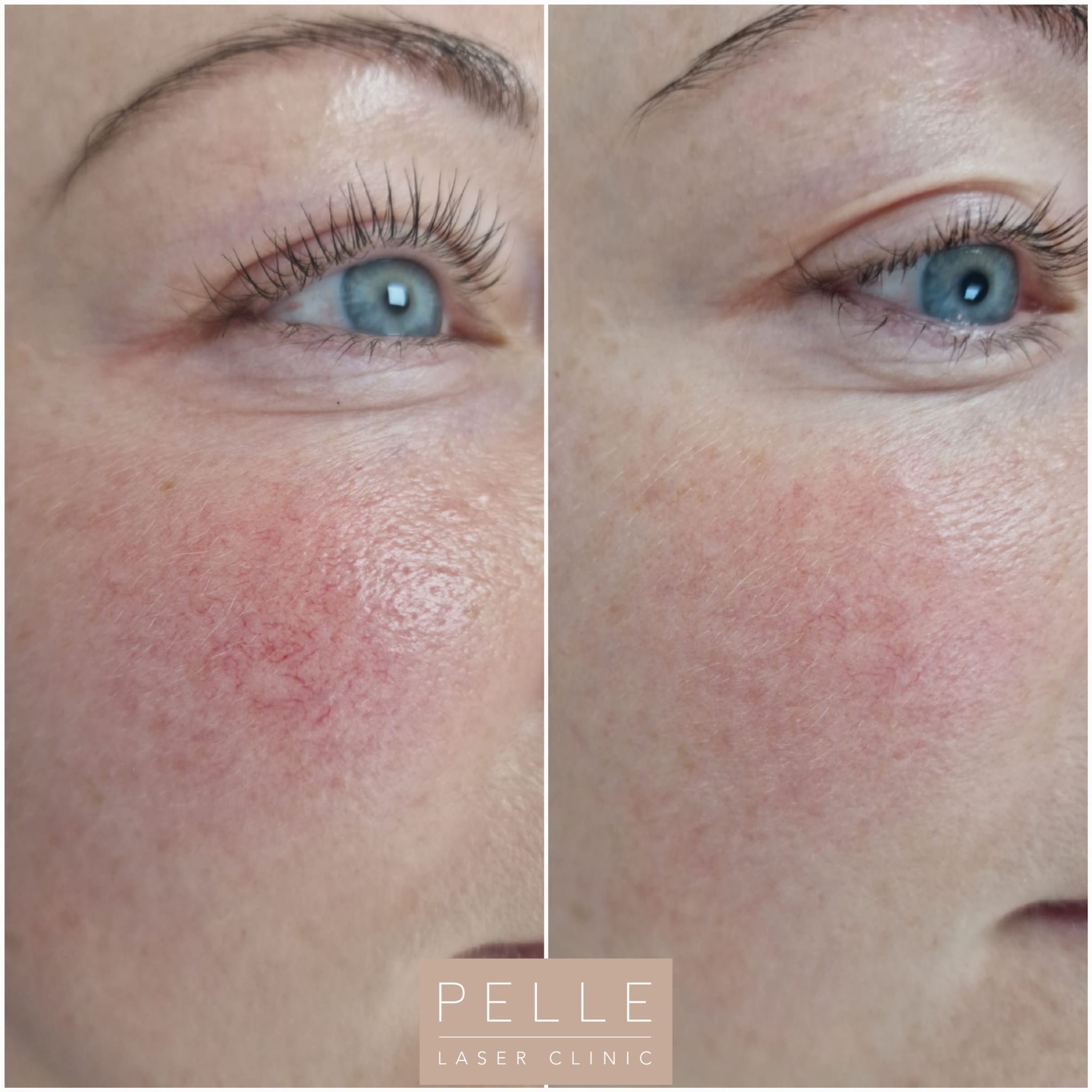 During this treatment, the pulsed light targets oxyhaemoglobin in the blood vessels resulting in heat that destroys them, leaving your skin with a more even colouring. Results can be instant or take a week to appear. Usually, 4-6 sessions are recommended for permanent results. It is important to note, that there is no cure for rosacea, however we can manage it and keep it at bay through this treatment. A yearly Top up is recommended.